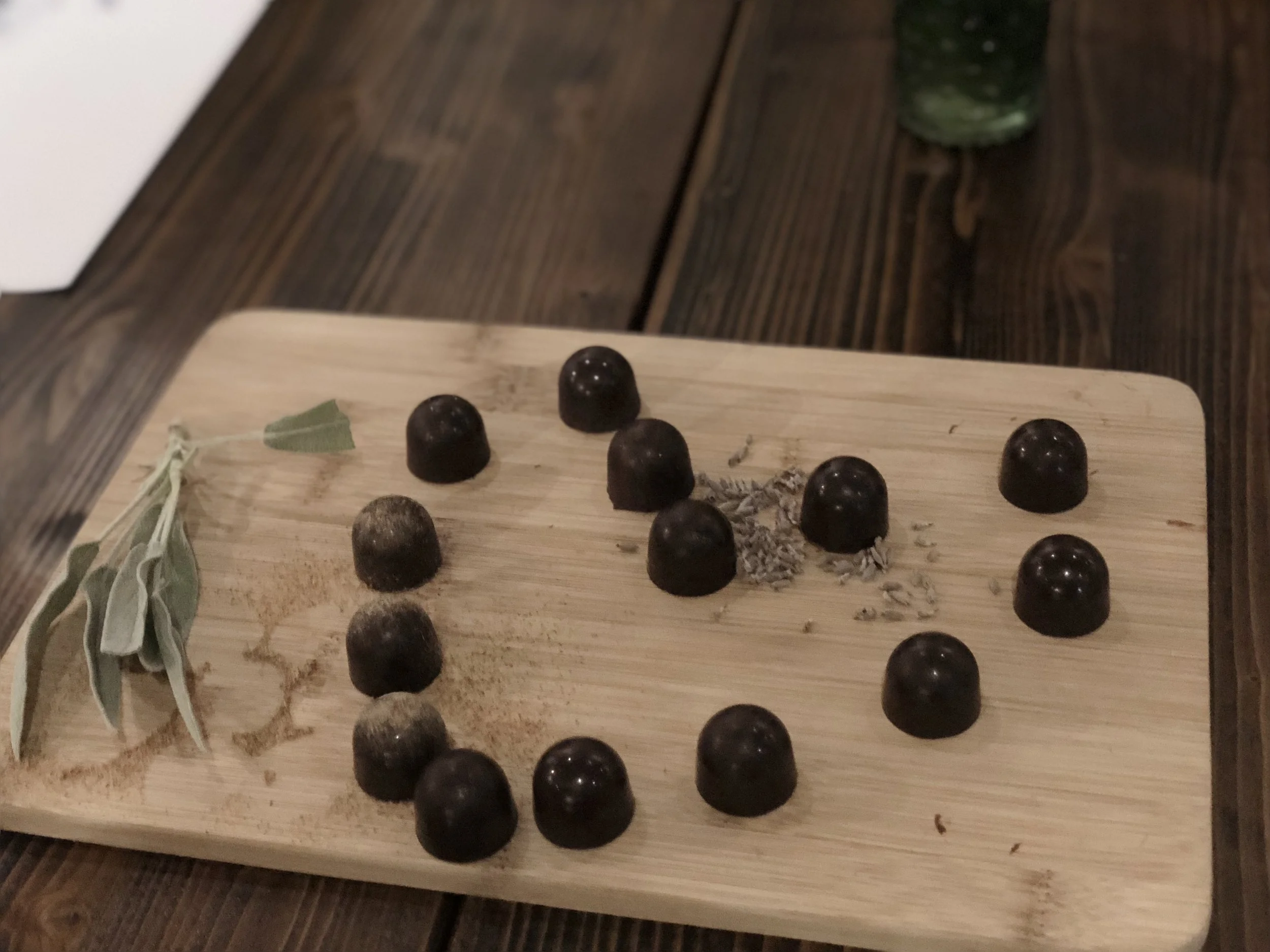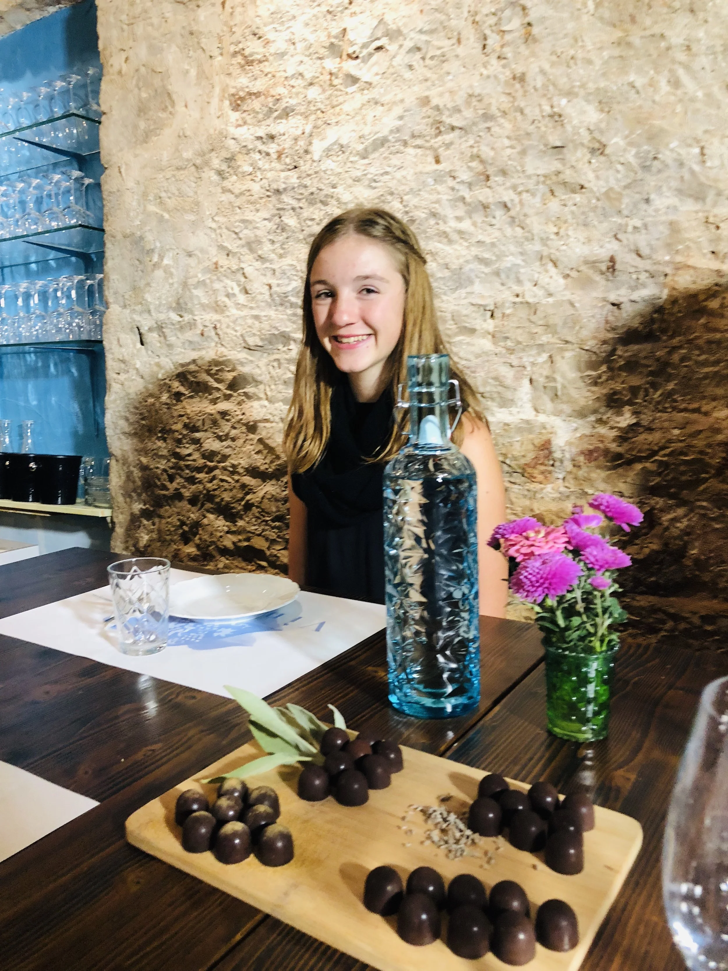 The girls loved the chocolates. Each chocolate was filled with a different Mediterranean herb and paired with a different wine.