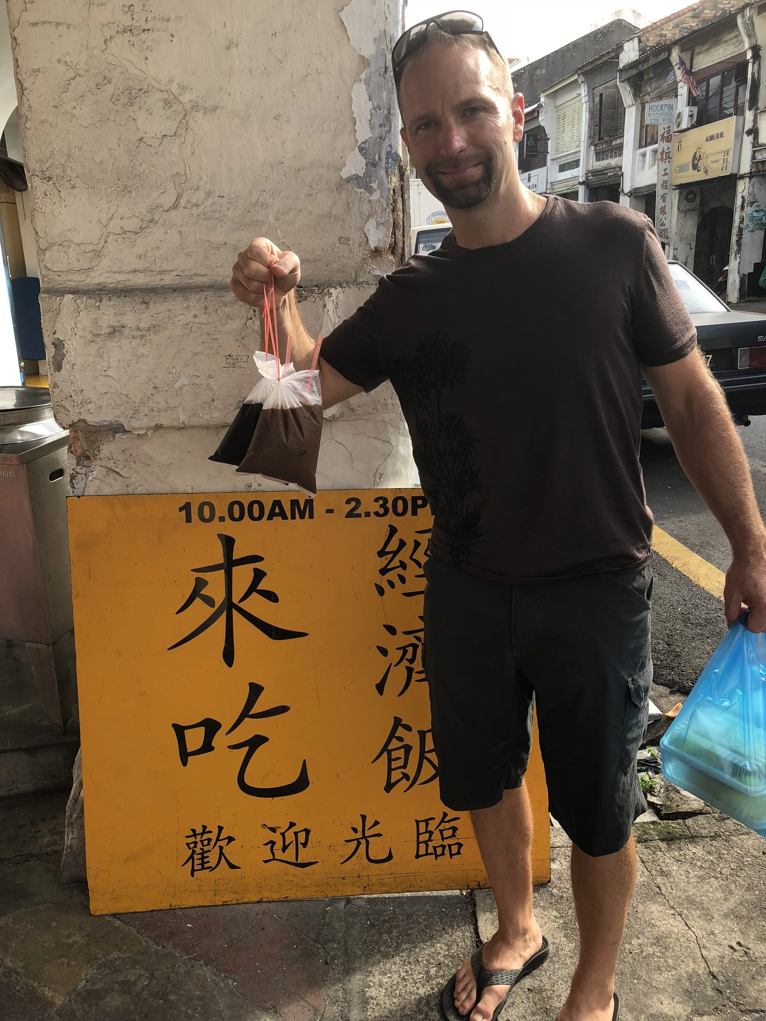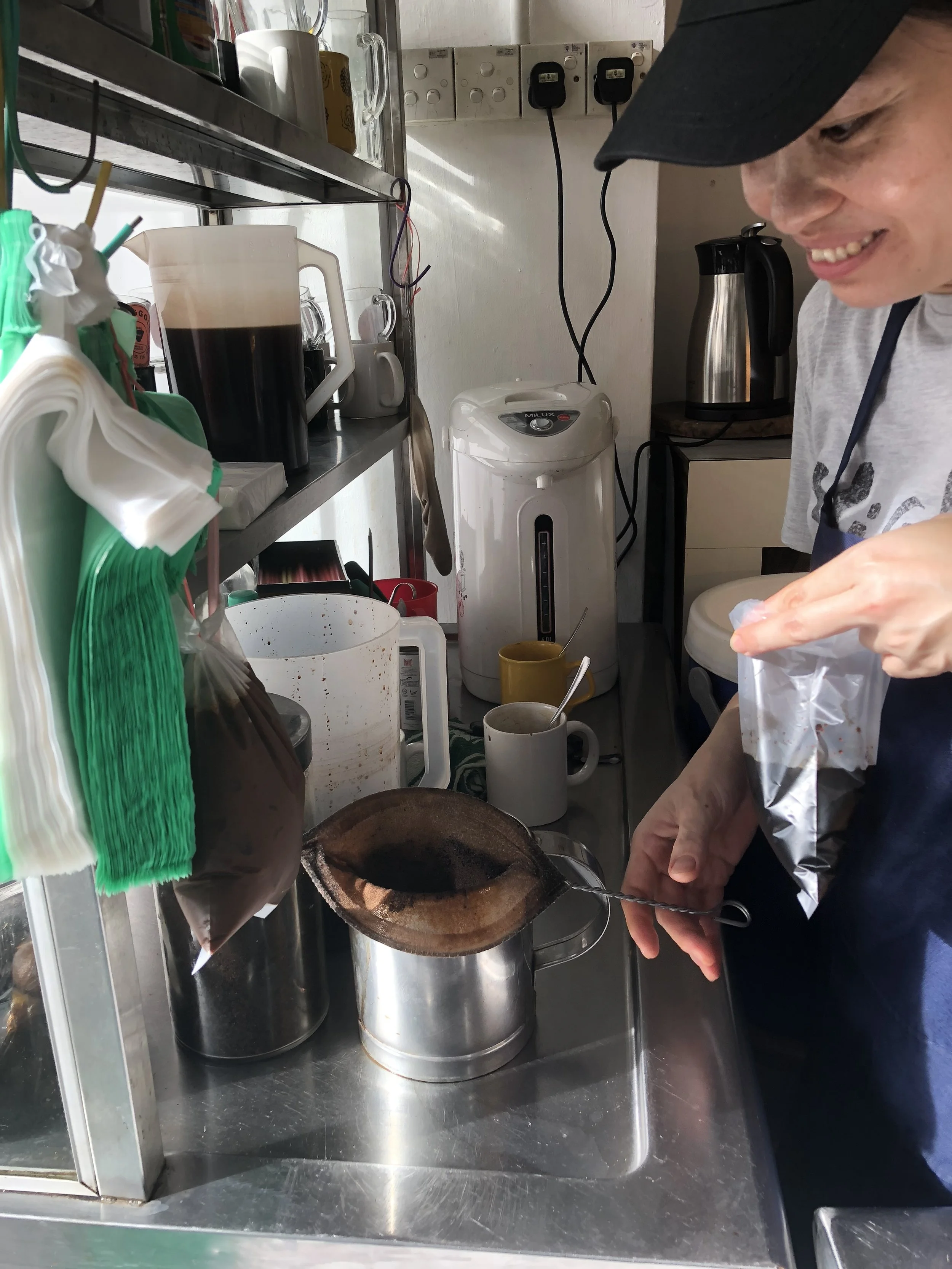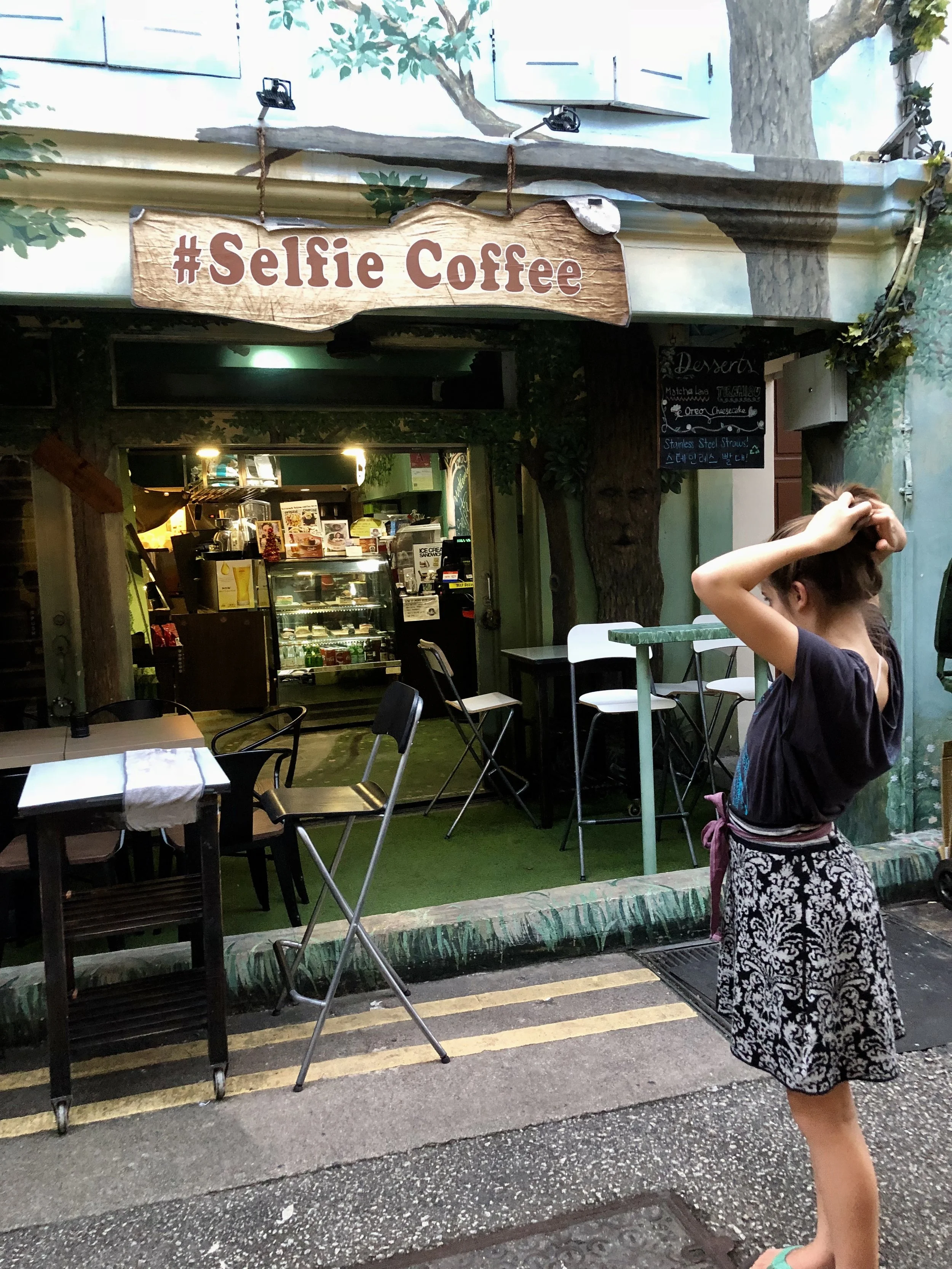 Singapore.  There is a beautiful efficiency of Singapore, and with the highly sugared iced coffee that is everywhere, Kopi-O, seemed to fit the city perfectly.  Kopi-o is coffee made through a fancy sock filter and with as much sugar as you can get to dissolve. If you want it cold and to go, it is poured over ice, tied together with a rubber run and straw was a perfect companion to, well anything: a hot walk, spicy Indian curry, chicken rice or beef satay and the perfect answer to jet lag.    It was also the land of selfies - while we never did,  you can get your selfie printed on the foam of your latte at the famous “Selfie Coffee” shop.