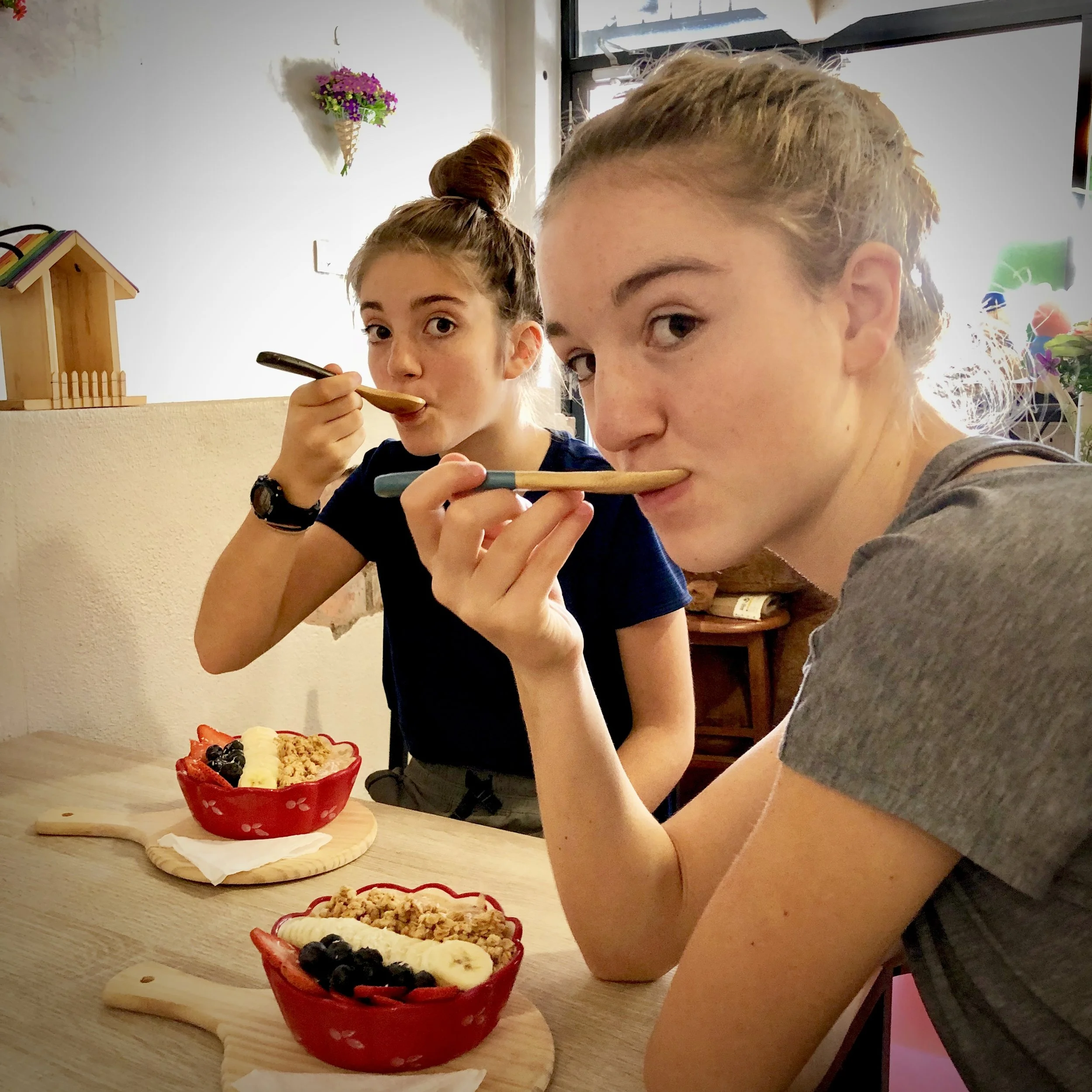 An instant favorite - fresh fruit on top of a bowel of fresh smoothie.