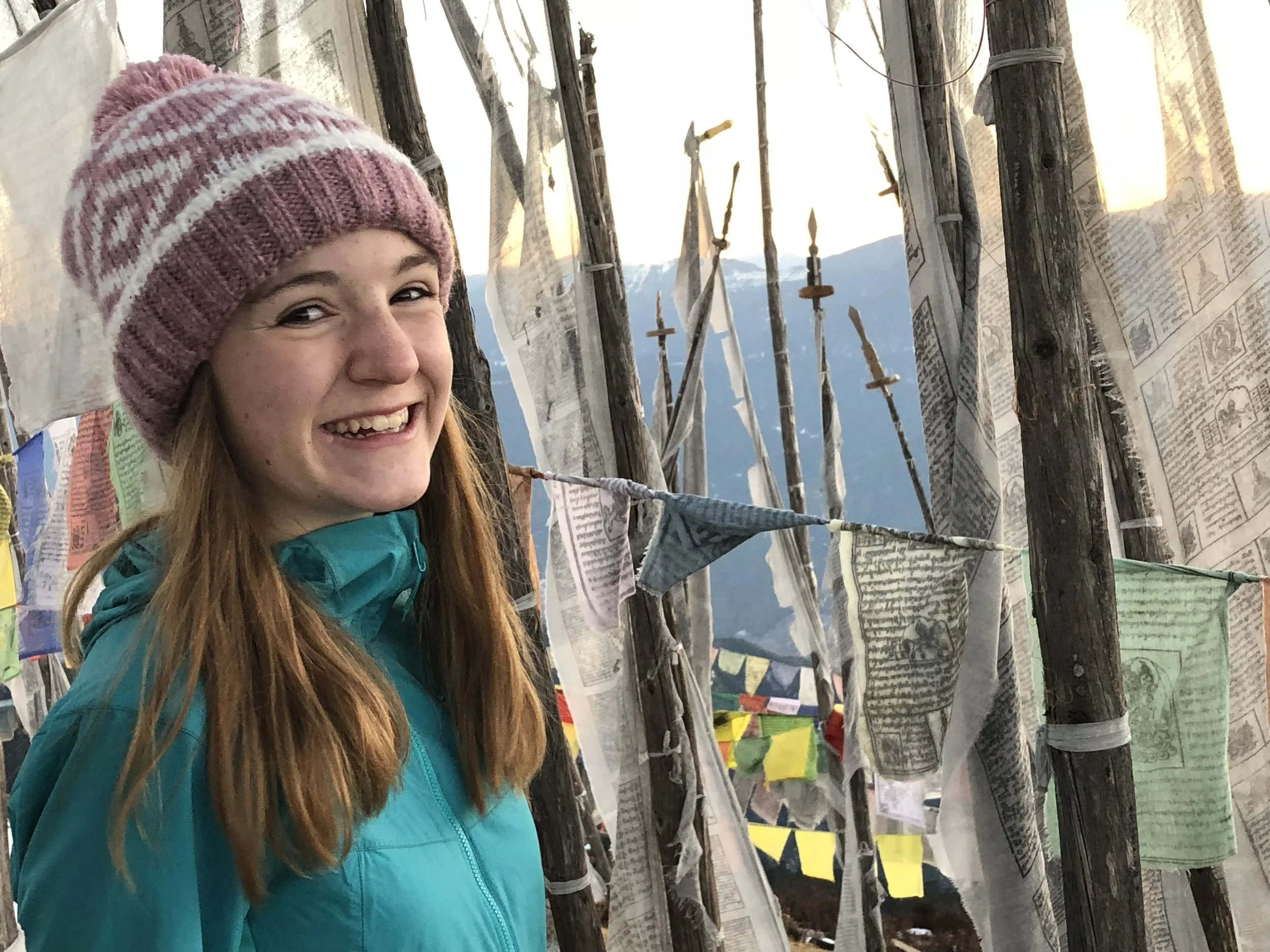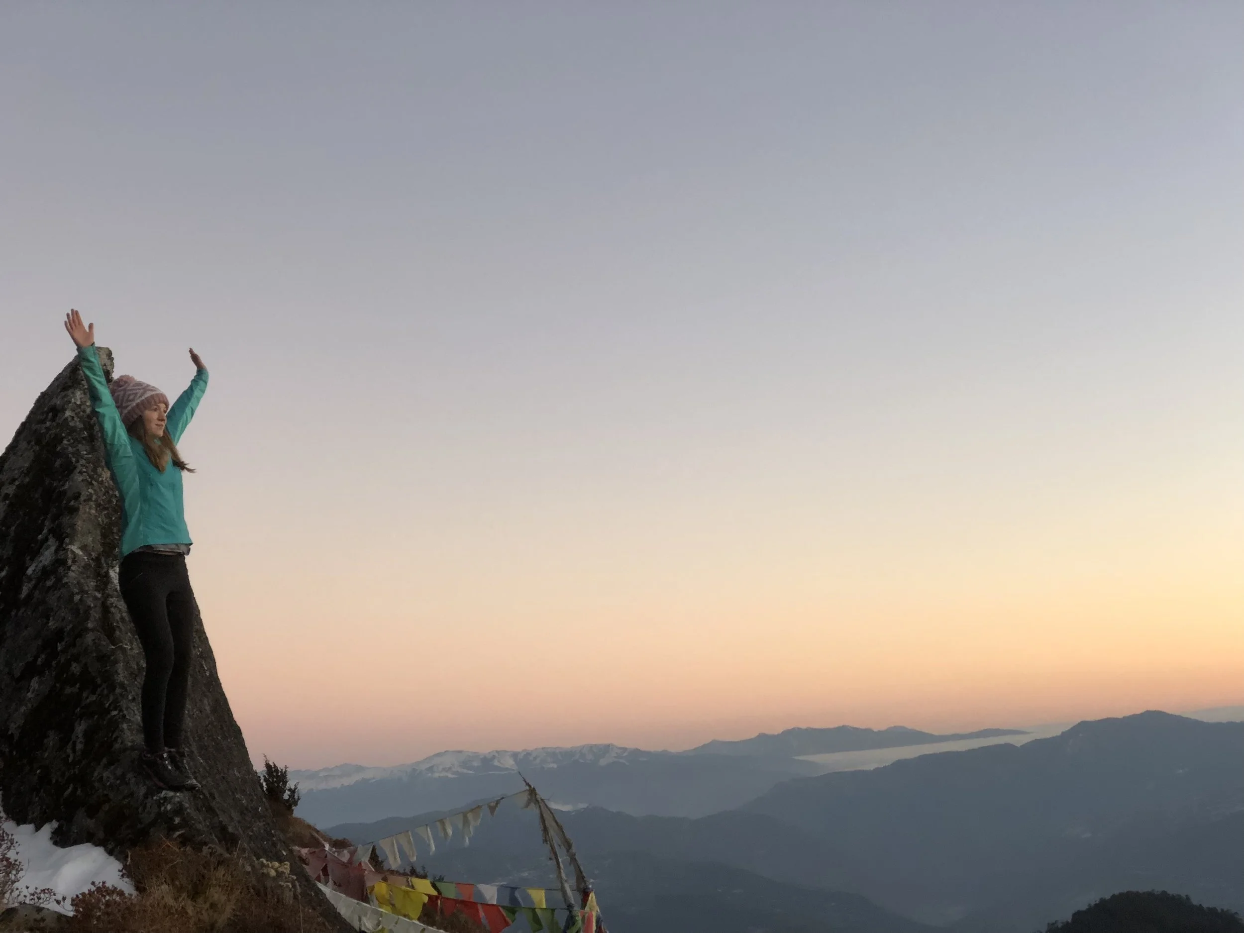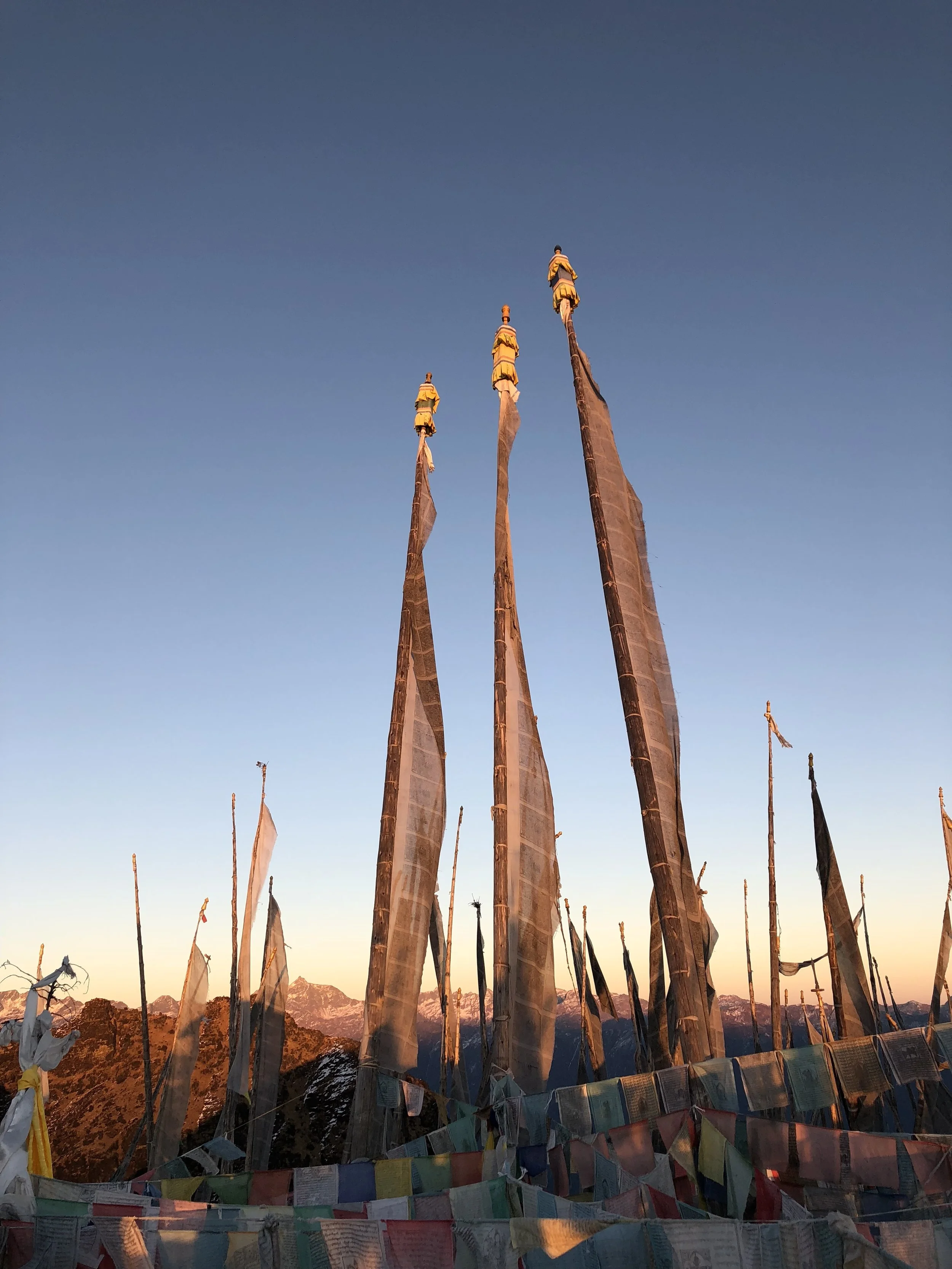 Sitting, fully enveloped by the fading prayer flags in the setting sun looking across Tibet and Bhutan and holding my daughter is a moment I will never forget. My sister and those who have gone with the God of Compassion before me felt as present as the stone I sat on, still warm from the sun in the rapidly cooling air.