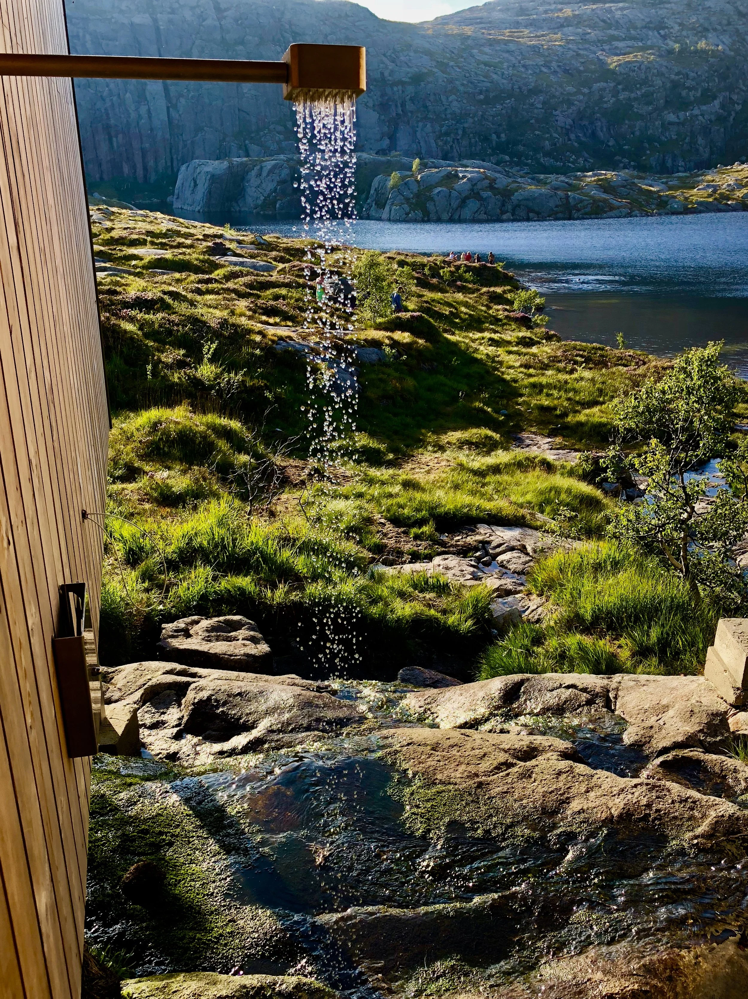 This was the shower that was connected to the sauna. You could heat the water in the sauna, poor it into the shower tank and take a warm shower outside. It was also surprising how often the lake was used as a bath!