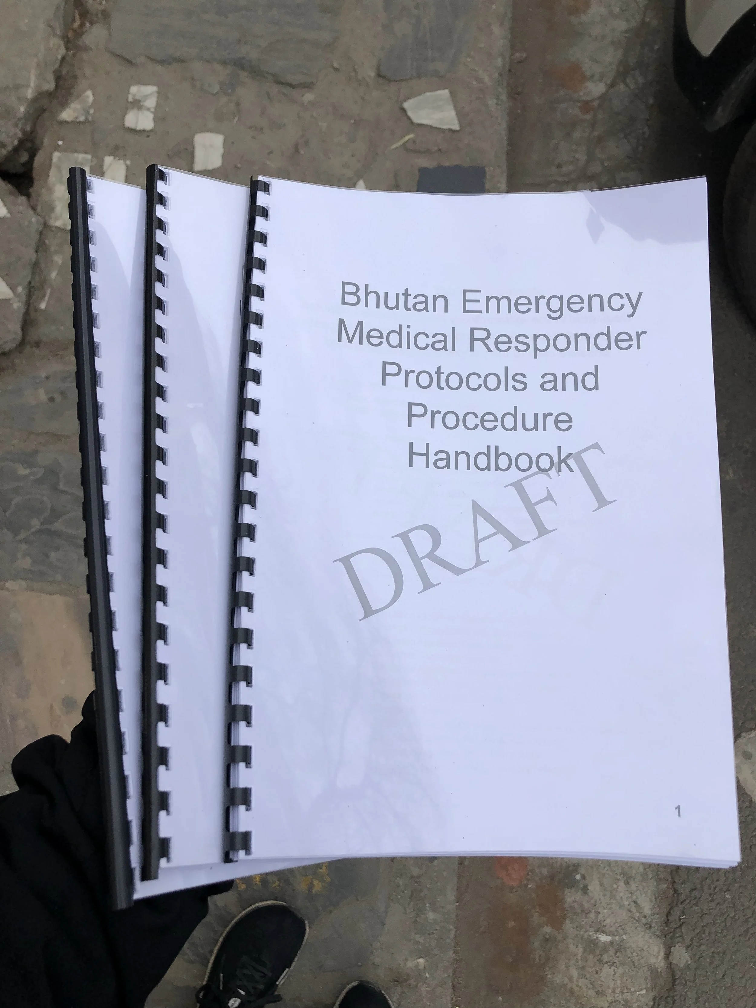This work was challenging, fun, and took way more time than I realized. How do you do ALCS if you can’t see the rhythm strip as you might only have an AED on board? How do you draft protocols that help and minimize the risk of hurting? How do you take this lifetime of learning and knowledge that still does not answer all of the questions and put them on a piece of paper for a protocol? As I frantically ran to print off 3 final drafts to leave in the department before we left town, it was gratifying to leave a tangible piece of me here, with a hope and a prayer that it is a seed from which the EMR system, and therefore more united emergency health care system can gown in Bhutan.
