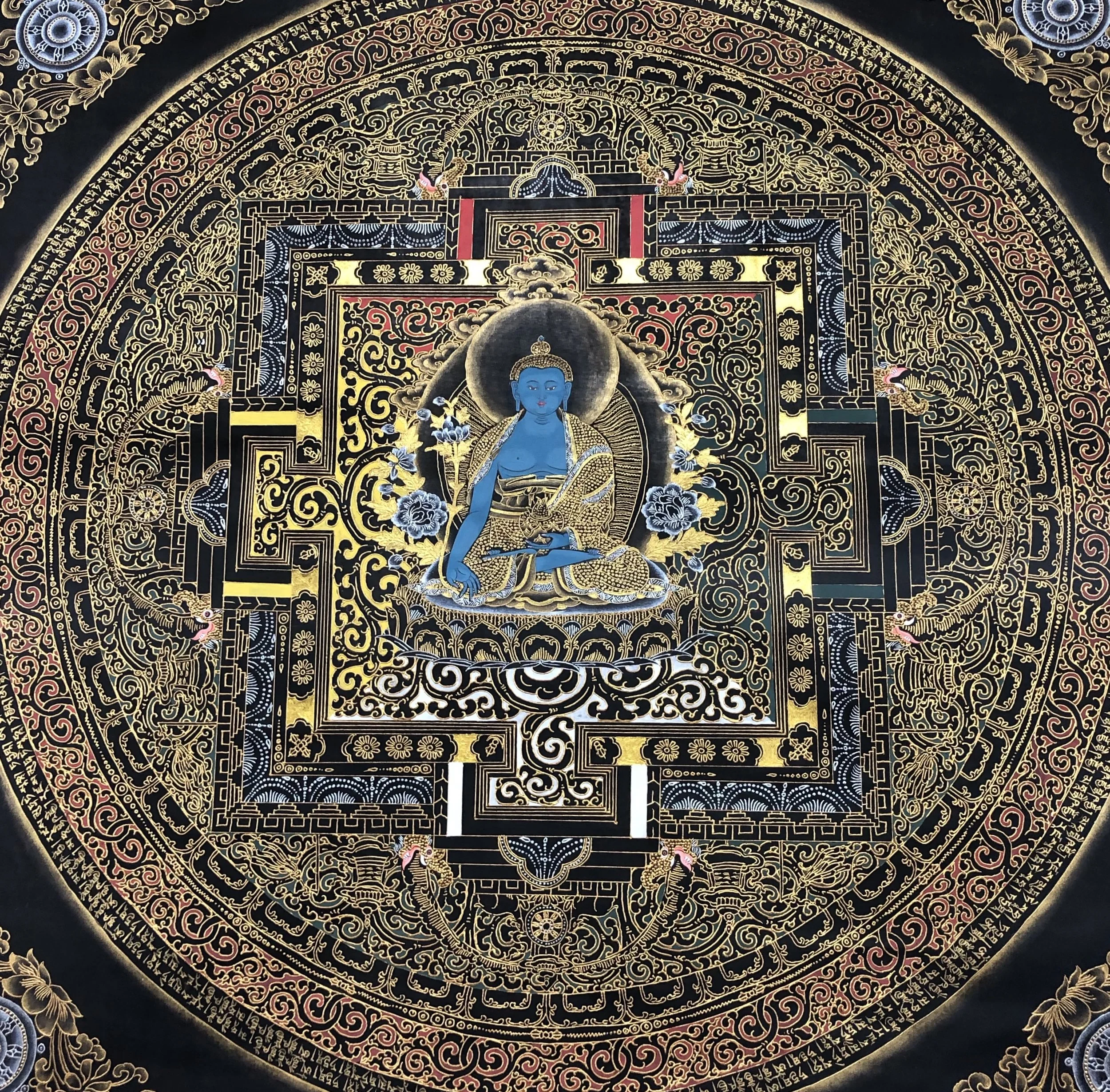 When I think on back on what I want to take from this experience, I think of this mandala. The blue medicine Buddha in the middle - calm with a hand in the position of the future and holding the medicine of the present. It reminds me of my wise attending who in the middle of chaos would say, “Anne do what is right for the patient and remember the rest is noise.” This Buddha is focused on the patient, on healing, surrounded by the beauty and chaos and noise of sickness, emotion, systems of care and all that we bring to illness and health. I also love the clear space around the head, like a protective shield to think with clarity when it is needed most.