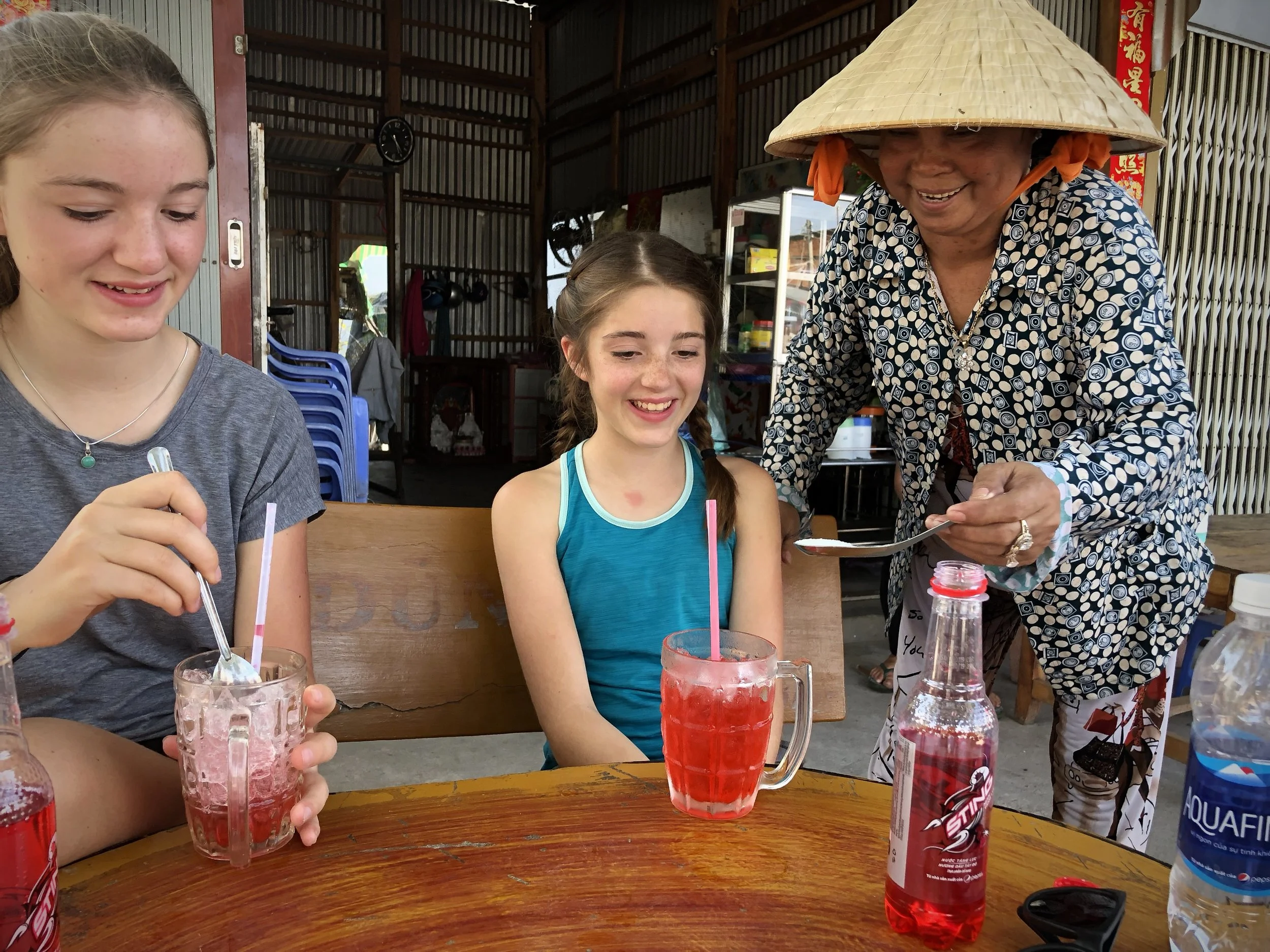 But to balance out all the veggies were the drinks - this one time we stopped and this women brought out these super sweet red drinks and spoon fulls of sugar to put in it for the kids . You can’t say no, so we just laughed at the craziness of the year and how many things we would “never” do at home, we just shrug as part of the experience.