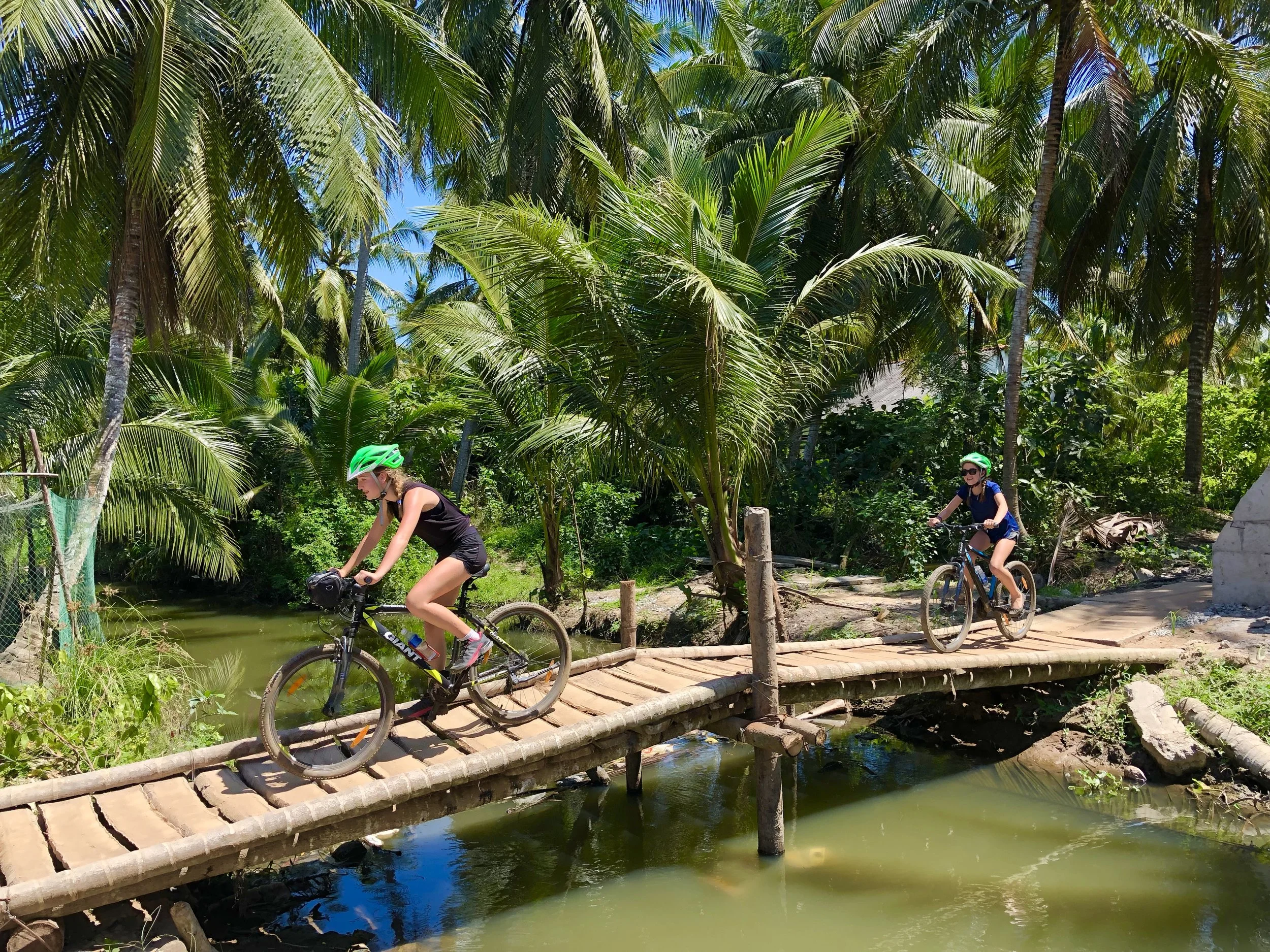 We decided to try something different and hired a guide to help us bike from Ho Chi Minh Vietnam to Angkor Wat in Cambodia. The hope of biking was to get off the beaten path and take in the sights, sounds and smells a different way while all getting some exercise. There were lots of hesitations. How would Traverse's back do? Could we all handle the heat? None of us have been biking or training for this, could we jump on and do it? It was also a lot more costly than just taking the bus on our own, but after our day with Chu, where the girls had a blast, and we saw the possibility of life on a bike in the Delta, we signed up.