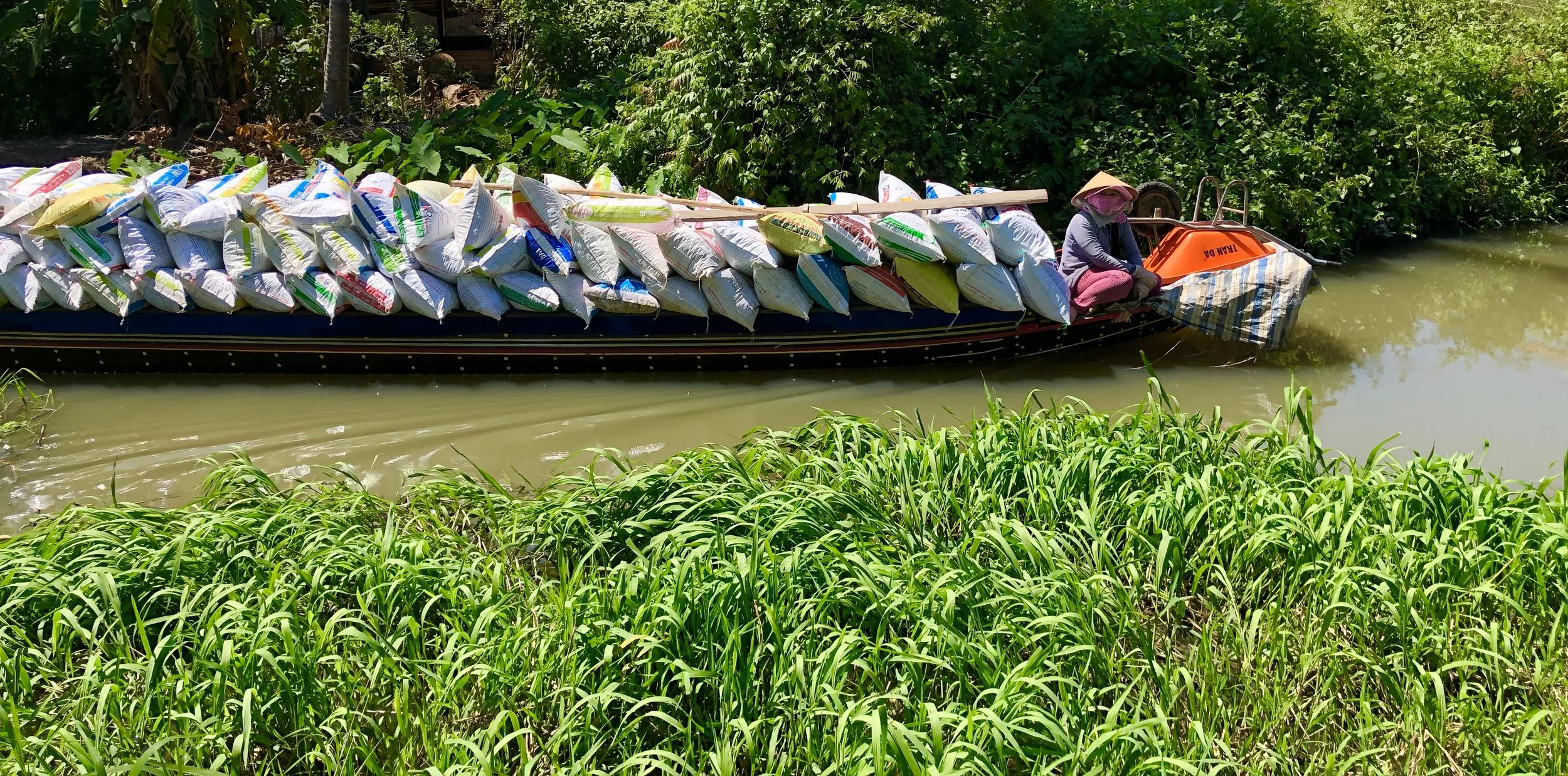 The river is a way of life around here. Transporting a great load down this small canal.