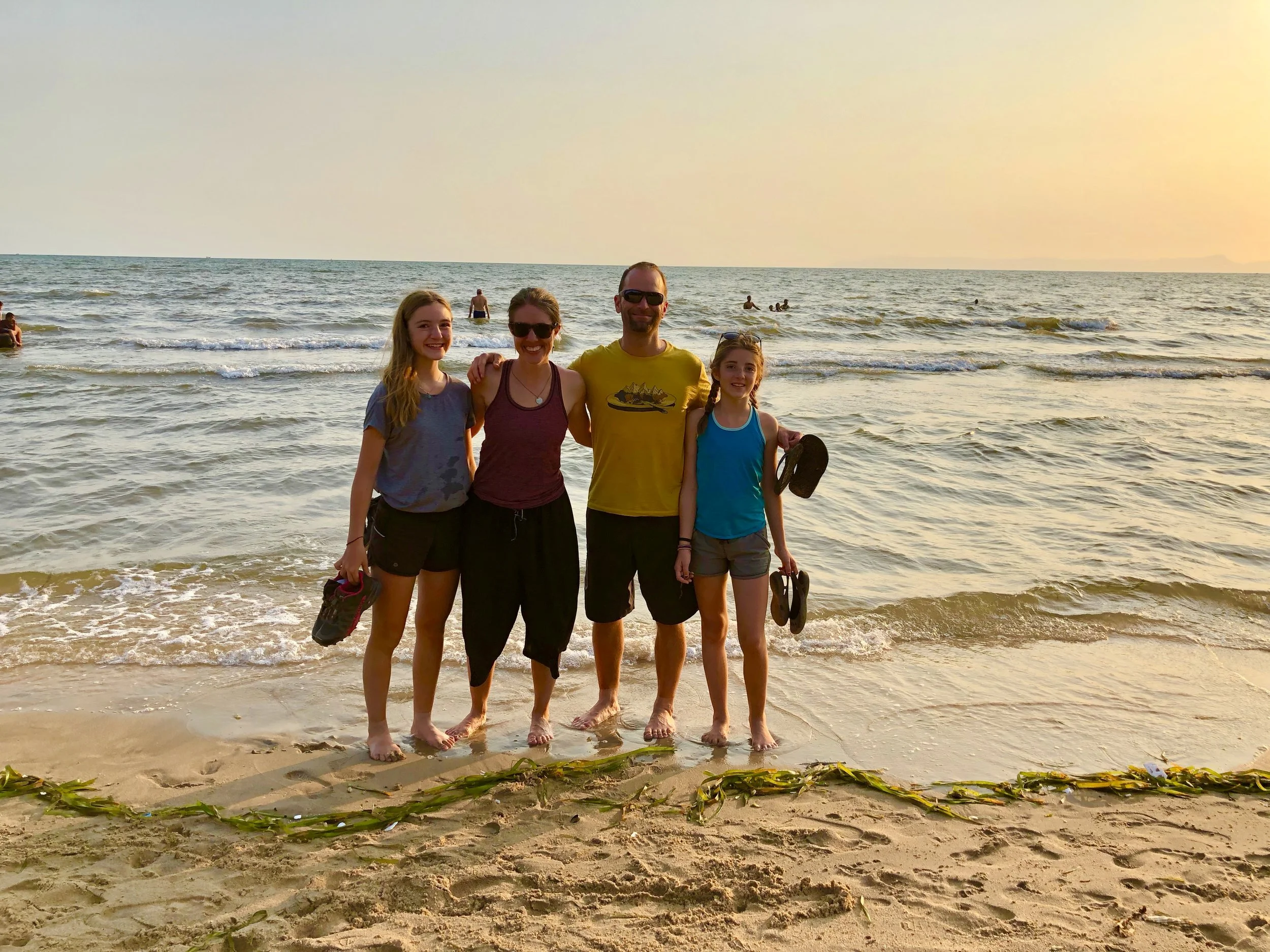 Once we crossed the Cambodian boarder we biked for a while through some dirt back roads and made our way to the ocean. It was such a beautiful surprise and off went our shoes as we headed in the water.